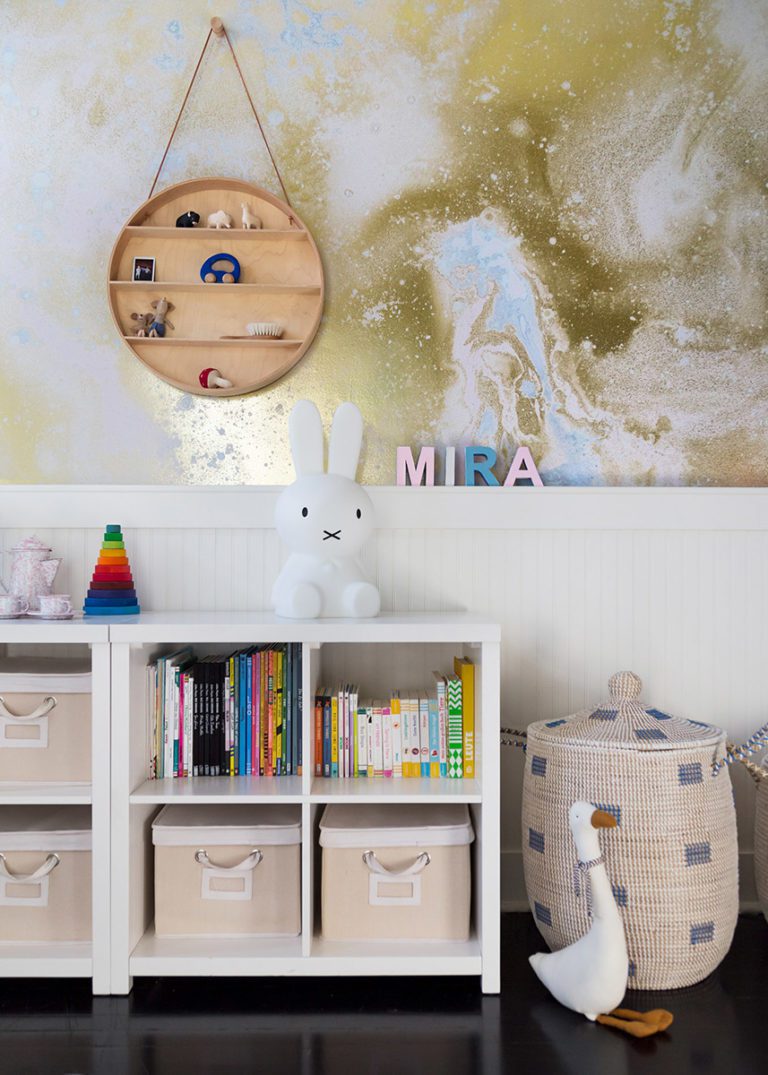 Karen and Thomas Richter of White Arrow have lived in a converted artist’s loft in Williamsburg since purchasing the space in 2010. Although renovated multiple times, the space has finally been completed. Mostly white, clean, and understated but with careful attention to detail, their home features a full wrap of Inverted Spaces in Orion in their nursery room. The home is large and inviting, a rarity in New York, and meticulously built to be beautifully designed while still feeling inviting.