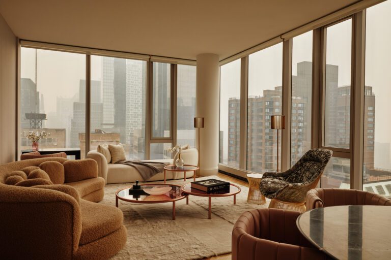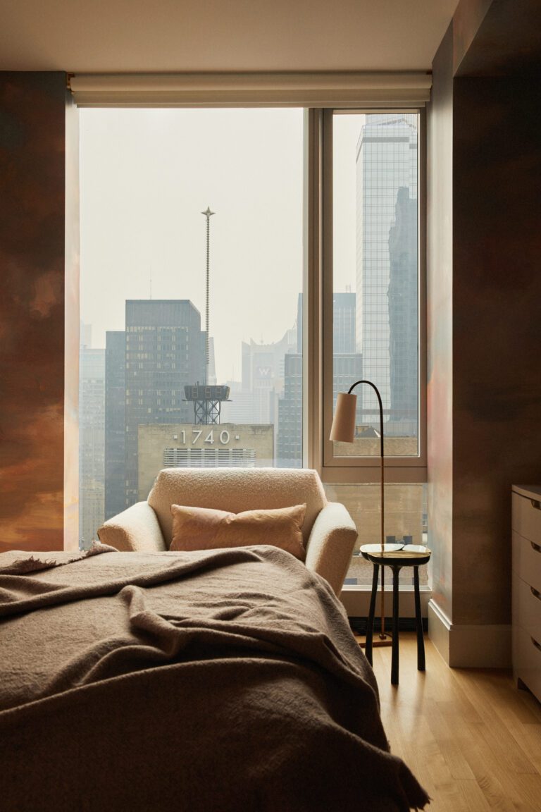 A soft interior, with neutral colours, made possible thanks to the work of the Bonesteel Trout Hall studio , «all the furniture was designed by our studio or by furniture manufacturers with whom we often collaborate. We try to be selective in our choices to respect the needs of the client and the architecture in which we fit. In this space we knew that focusing on these details and the scenic urban landscape would be essential. Our aesthetic is very tailored, layered with texture and beautiful handcrafted materials. We rely on artists and manufacturers to help improve our design choices and the daily experience of our customers”, say designers Michele Trout and Heidi Bonesteel.