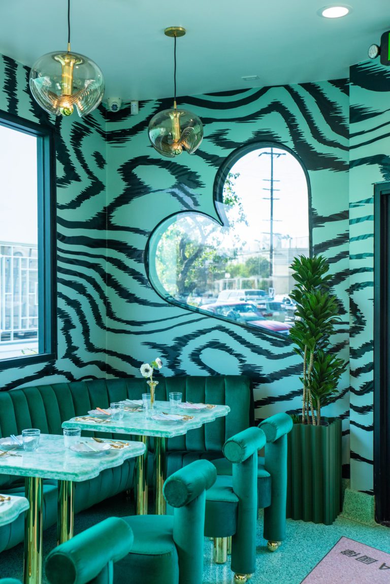 “When designing clothes, you always think about the space the person would be in,” says Humberto Leon, cofounder of cult fashion brand Opening Ceremony and former creative director of Kenzo. With his latest venture, a Peruvian-Chinese restaurant in Los Angeles named Chifa after the popular fusion food, he’s realized that space. And, oh, what a world it is: From heart-shaped windows to zebra-print wallpaper to scalloped tables and wavy flatware, his cool, colorful stamp is everywhere…”