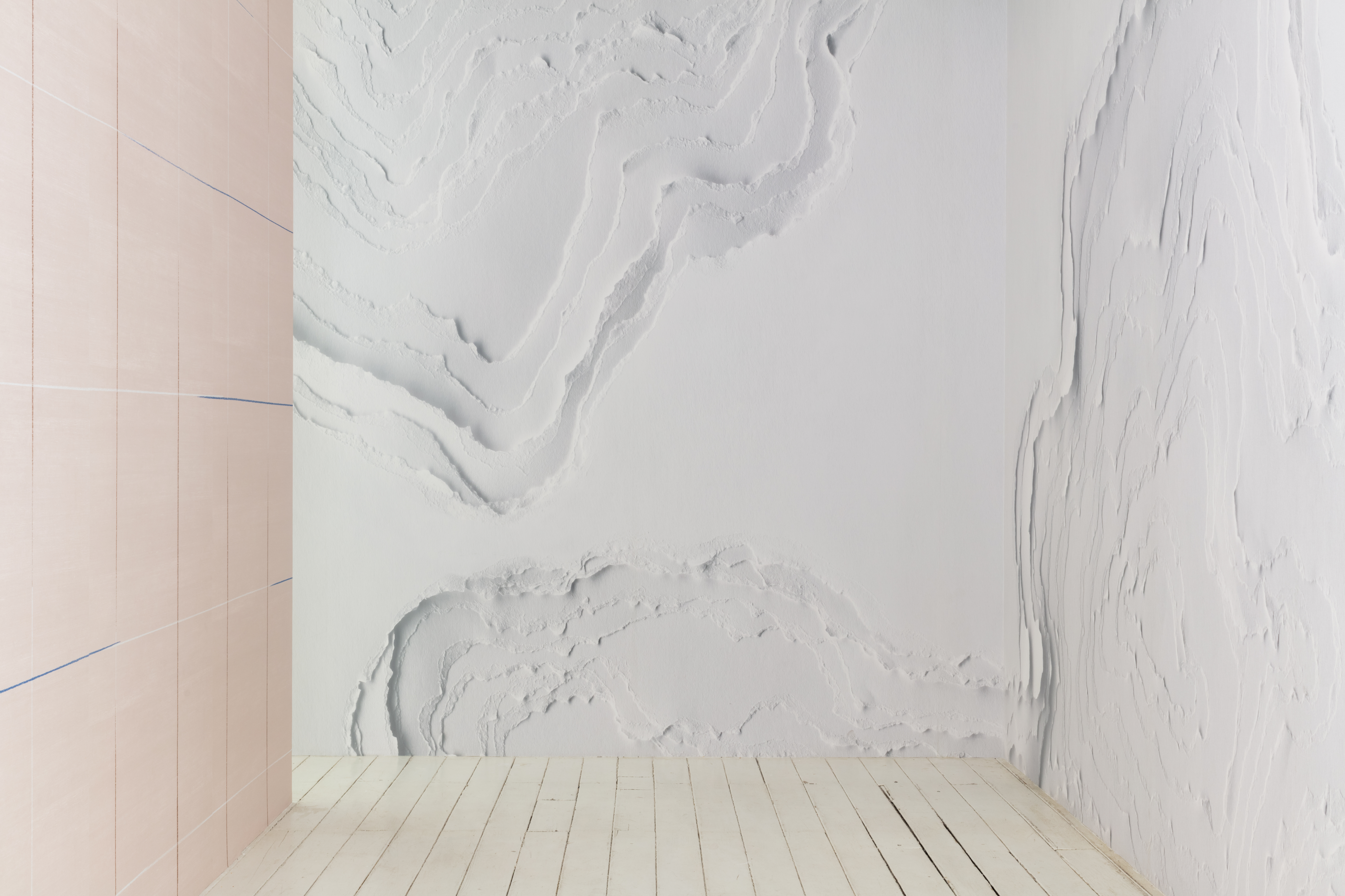 The wallpaper concern’s new collaborations were installed exhibit-style in a gallery space of the Brera district. The biggest standout? In our opinion, it was Snarkitecture‘s Topographies, which looks like a three-dimensional torn-paper composition from afar but up close, is actually a two-dimensional pixelated wall covering.