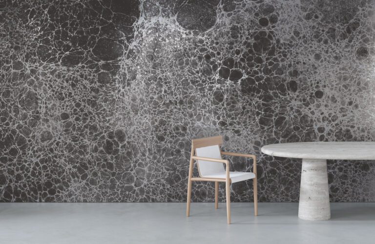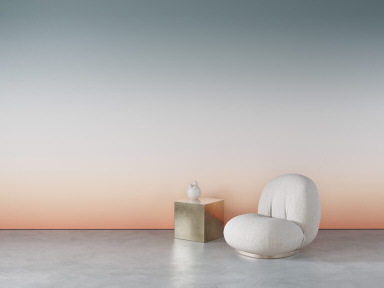 … Another easy update that has added a lot of joy to the apartment is the Calico Wallpaper. “I was inspired by the brand, so I went to their office and loved everything,” says Isabella. “In one room it looks like the surface of the moon (Lunaris in the colorway Midnight) and in the guest bedroom it’s this amazing ombré sunset (Aurora in the colorway Ray).”
