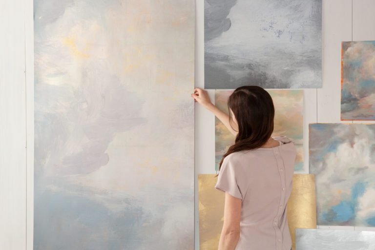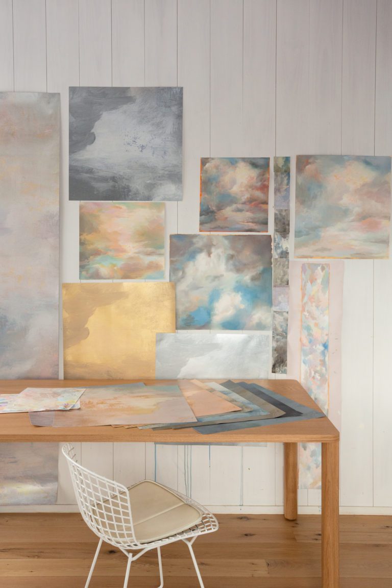 Looking to the sky above us as an open canvas, Atmosphere conveys a sense of the infinite variety found in the natural cycles of our climate. The collection combines flowing brushstrokes and ephemeral hues with reflective metallics to emulate the feeling of sunlight peeking through shifting clouds. The result is an immersive skyscape that catches the imagination, bringing a serene visual meditation into the home.