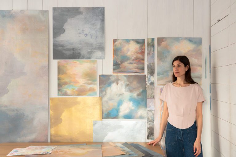 Atmosphere creates an environment that is at once evocative and grounded. Filled with amorphous cloudforms tinted by the transitioning hues of the sun’s natural light, it reminds us of the transformative possibilities in the air all around us.