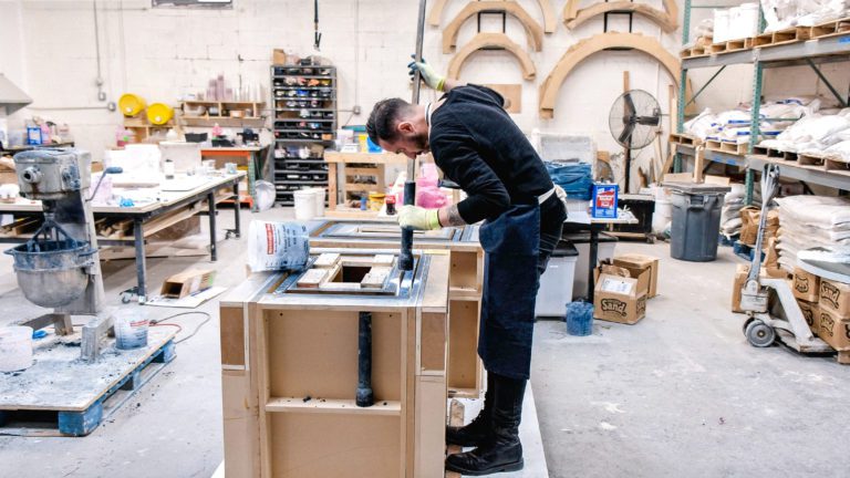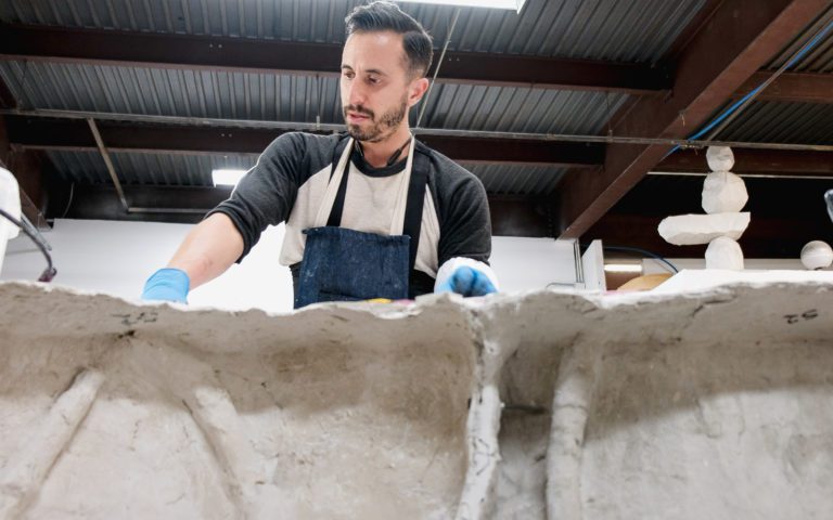 Fernando Mastrangelo is a Brooklyn-based artist with a deep commitment to ecological issues. His works are sculpted by hand from natural or repurposed materials such as sand, salt, silica, and crushed or powdered glass. Calico Wallpaper was honored to collaborate with Fernando Mastrangelo to create this impactful collection.