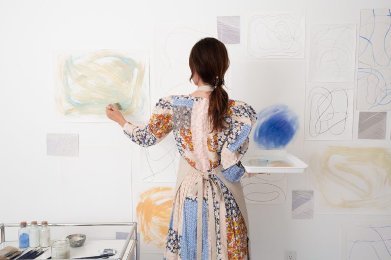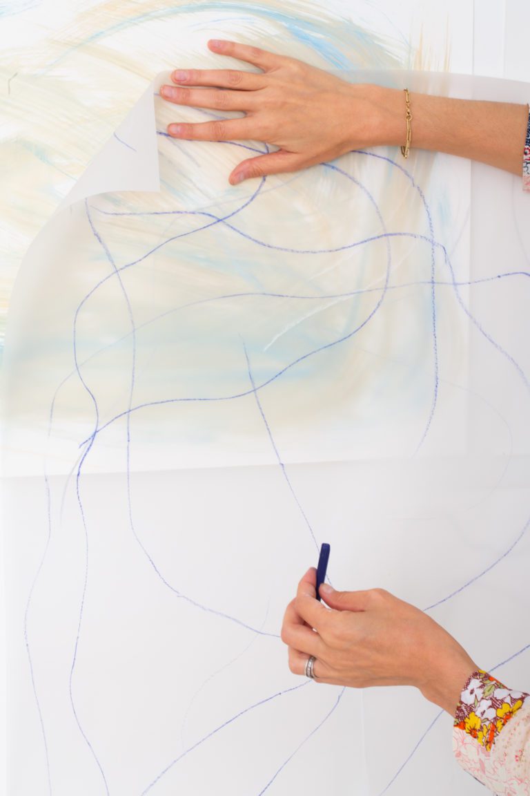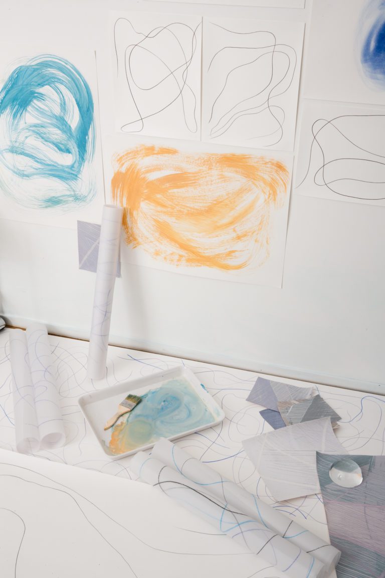 Drawing inspiration from the continuous pathways formed by the nomadic movements of water, we worked with free flowing gestures to capture the expressive nuances of a line. Undulating through space, the line shifts in thickness and color creating unexpected moments of illusion and depth. We then set this design against a textured background, playing with negative space using subtle variations of color. The result is an interconnected pattern immersed in soft hues.