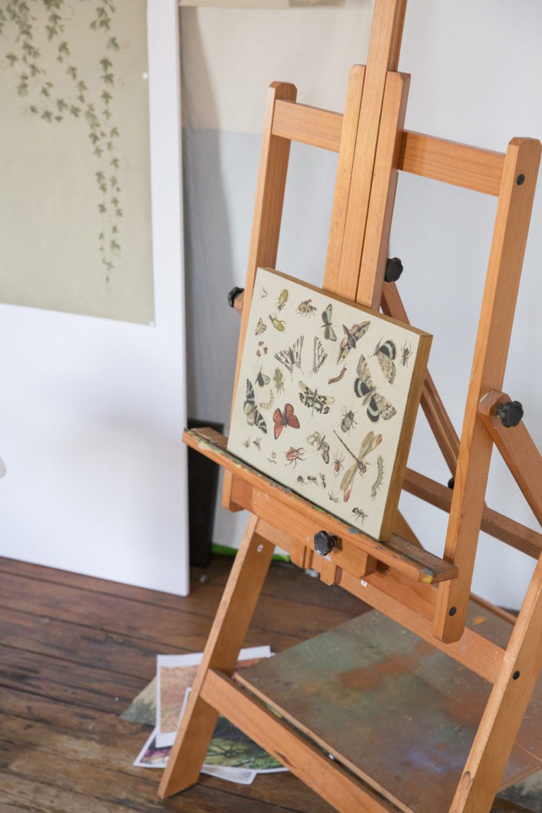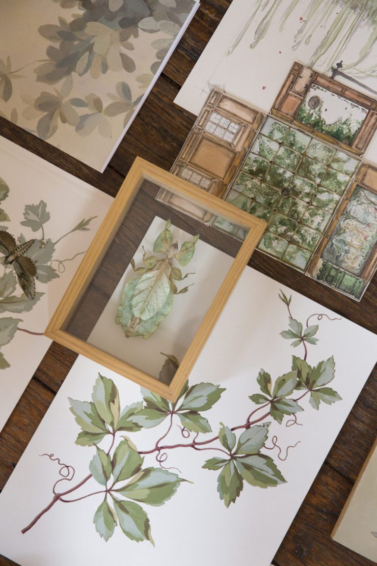 For the Gobelin Room at Schloss Hollenegg, Charlap Hyman & Herrero has created a printed mural from hand painted artworks to clad both wall and ceiling. Overgrow depicts the lush and verdant vines that spill down from covered walkways, staircases, and towers throughout the castle, teaming with a variety of insect life. By bringing this defining feature of the facade indoors, the designers distort the distinction between the decorated interior and the wilderness beyond, while referencing the presence of historical landscape wallpaper throughout the castle. Installed amongst the furnishings of a stately bedroom and large tapestries from the 17th century, the mural teeters between a romantic suggestion of man’s poetic relationship with nature and an ominous reminder that all buildings will become ruins eventually, overtaken by the untamable.