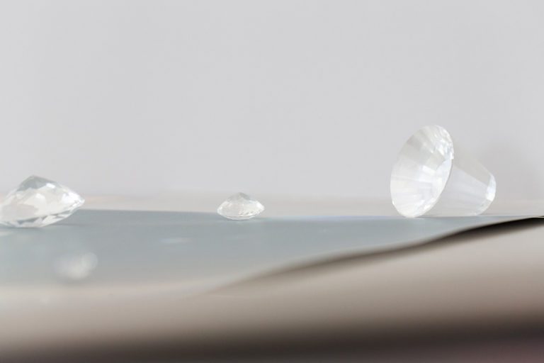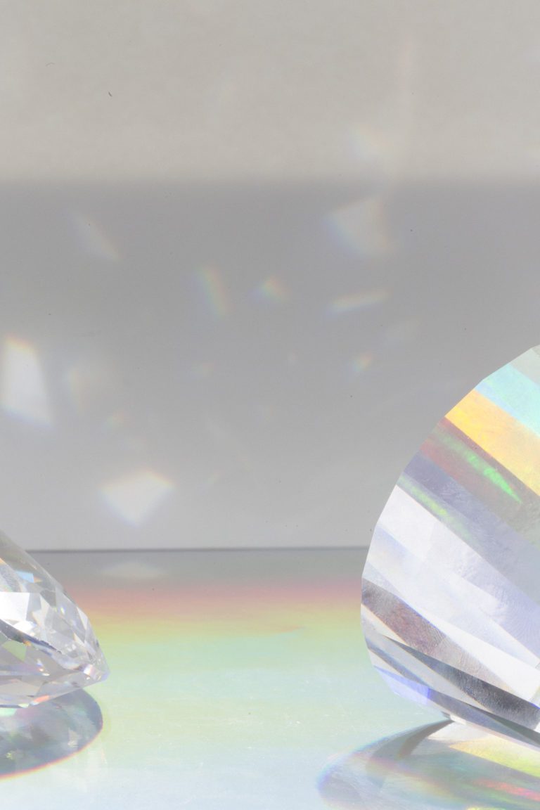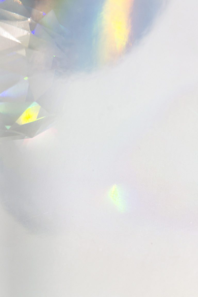 To create the collection, we worked with various prismatic forms, experimenting with the spectrum of colors produced by the refraction and diffusion of light. We photographed these choreographed scenes and used collage to create compositions that capture the effect of dappled light playing naturally across a surface. We then set these photographic collages against ambient hues, creating a series of five opalescent colorways.