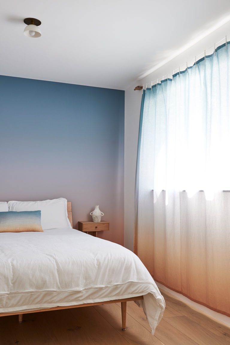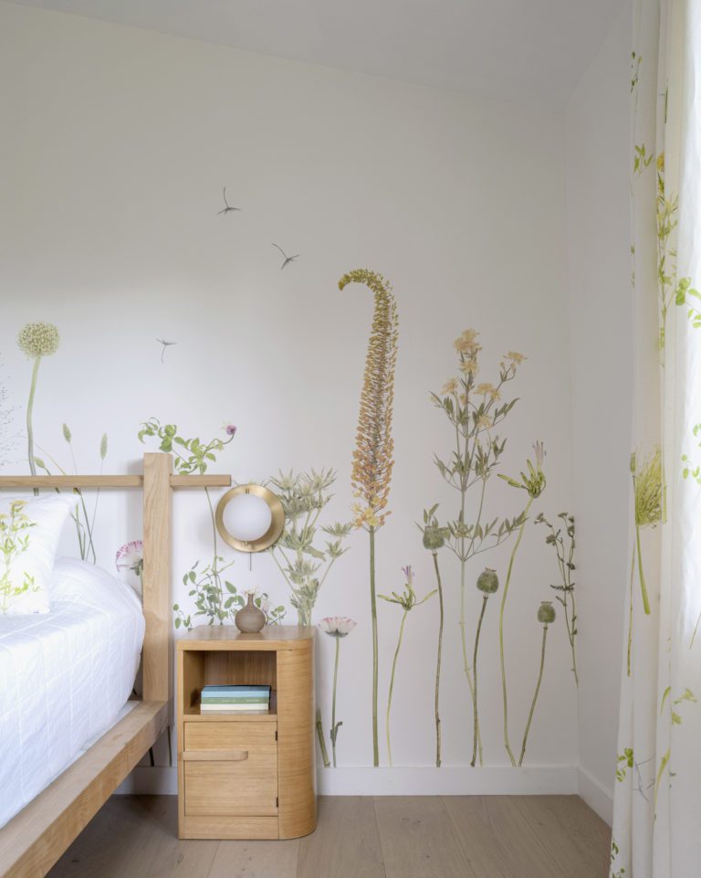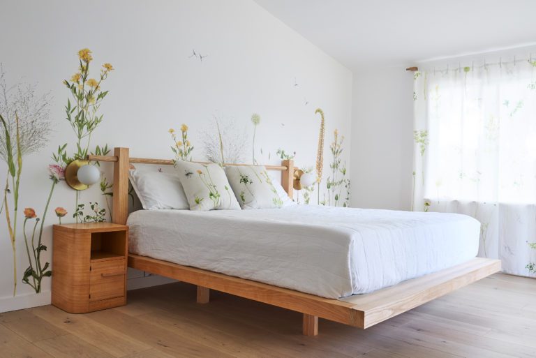 Calico Wallpaper’s Flora Collection in the colorway Wildflower in the master bedroom (3rd & 7th images), Aurora Collection in the colorway Ray in one bedroom (5th image) and the colorway Petal in another bedroom (6th image).