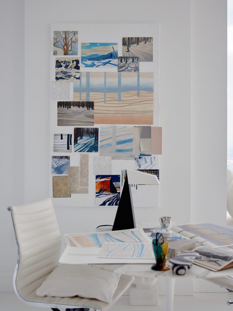If ever there was a vantage point to watch how light changes throughout the span of the day, month, or year, it would from designer Kelly Behun’s New York City apartment (see it here). Behun brings her unique vision to a new perspective through a collaboration with Calico Wallpaper. Sylvan is a hand-painted landscape reflecting shadows that cast around abstracted trees on snowy mountains. The pattern captures a moment in time, bringing together landscape, light, and shadow. Each of the eight colorways evokes a hypnotic effect, much like how it is watching light play around you as the day passes on and the sun moves west.