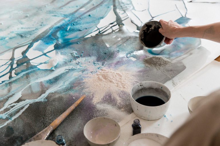Another Calico wallpaper design, Palette, features gigantic brushstrokes. These designs are then digitized so they can be custom-printed to fit any wall and are durable.