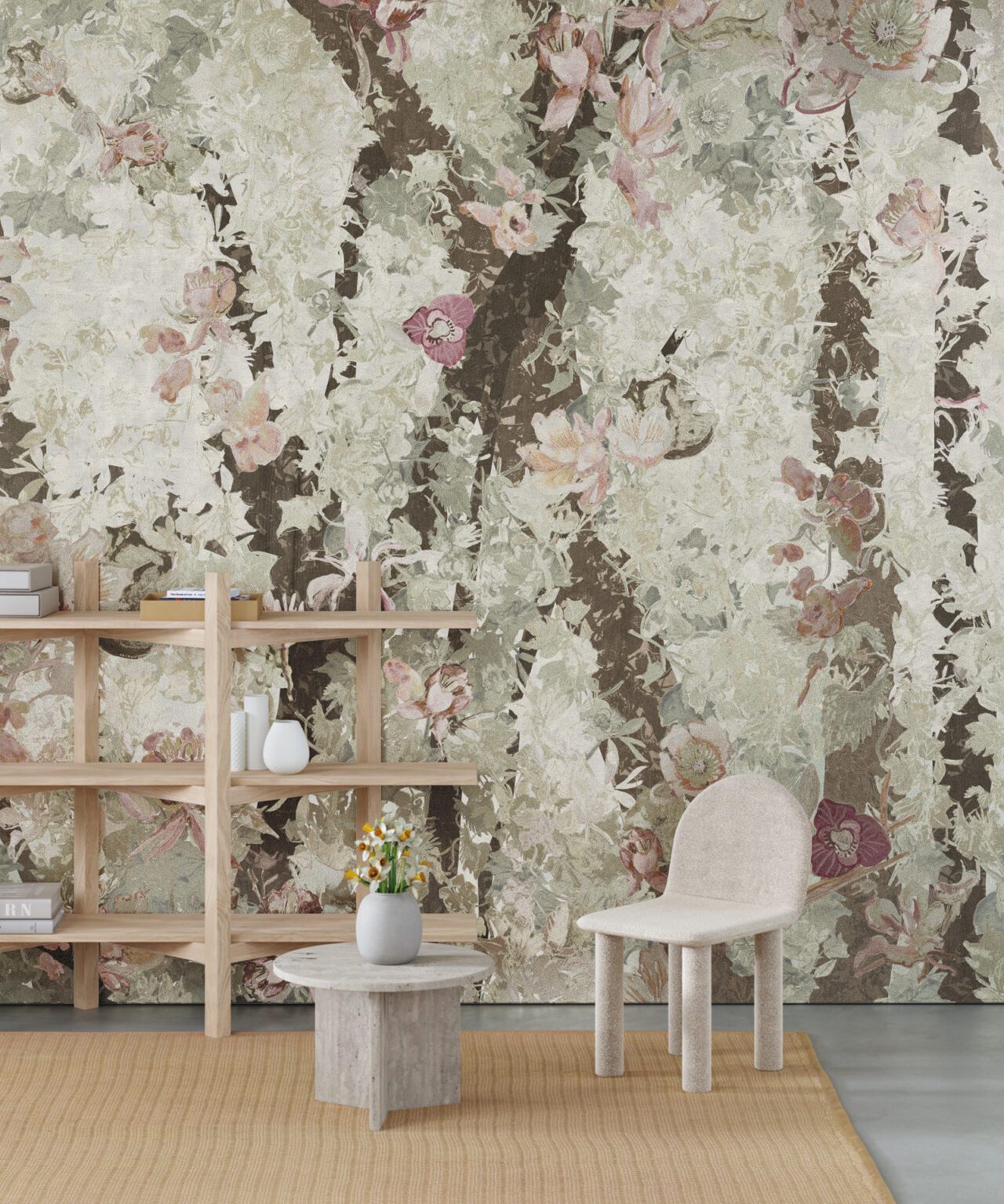Tender greens and soft browns combine to create Sapling, a symbol of new growth and the promise of a flourishing future