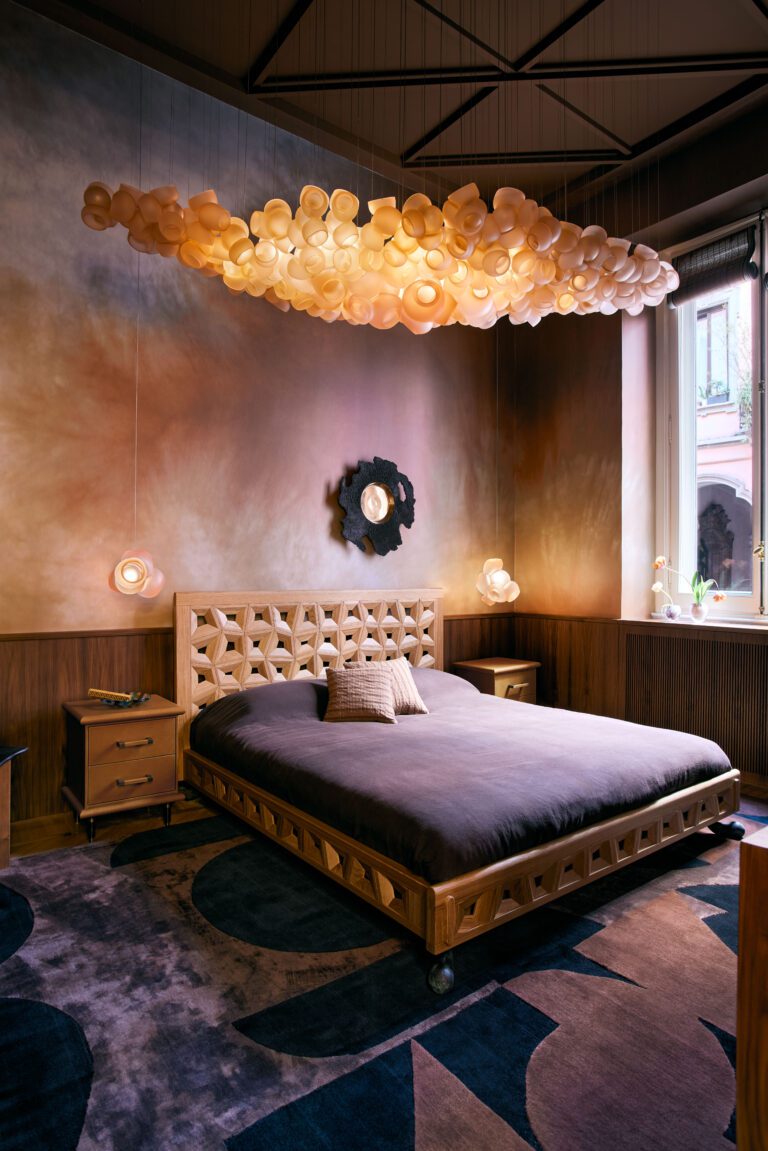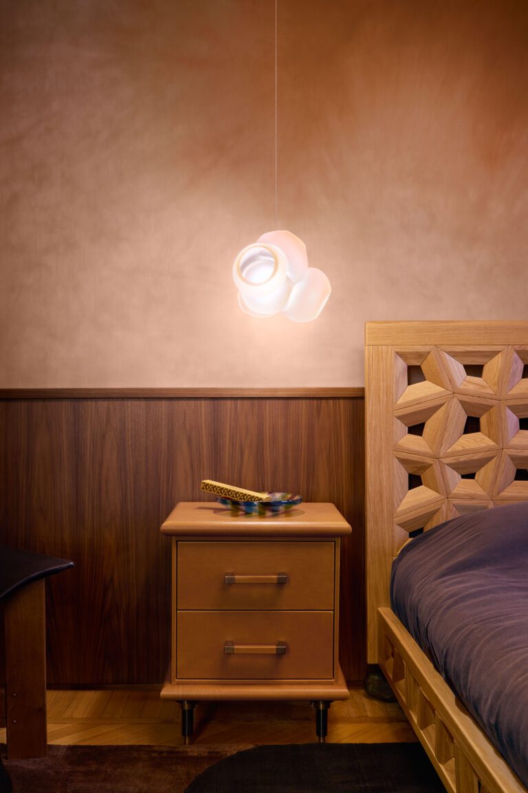 In celebration of its 20th anniversary, Bocci chose Alchemy in Walnut, for the bedroom at the Bocci Apartment during Milan Design Week 2025. Alchemy served as the backdrop of this special exhibition curated by David Alhadeff of The Future Perfect. This show explored Omer Arbel’s design discoveries and also featured works by Orior and Christopher Farr.
