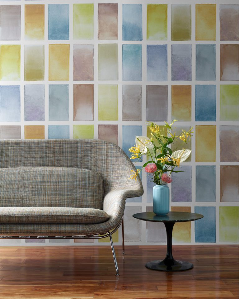 Fields by Rachel & Nicholas Cope is an exploration of the relationship and interactions between color, line, and shape. Inspired by Knoll’s history as a pioneer of modern design and the Copes’ boundary-pushing exploration of traditional techniques, Rachel and Nick developed a collection of three distinct patterns that reference modernism and color theory through a contemporary lens. As works of art that go beyond the frame, the designs achieve an organic serenity and expansiveness through large scale, structured repetition.