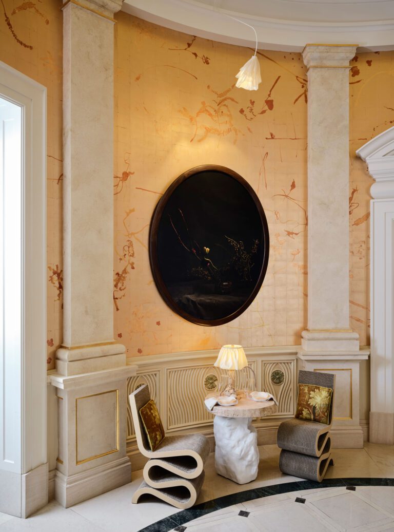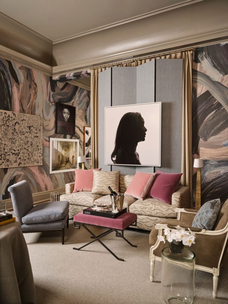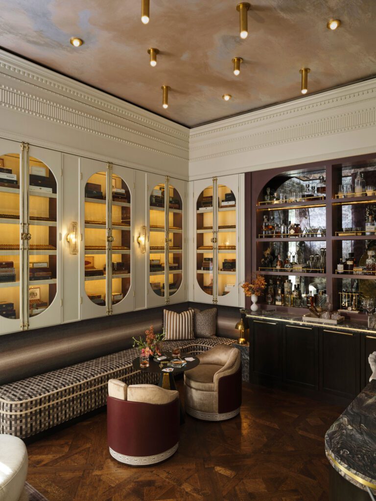 Traci Connell Interiors redefined the classic cigar lounge with a fresh, feminine twist in the “Femme Fumoir.” This refined space seamlessly merges French Renaissance style with modern sophistication, featuring our Atmosphere collection.
