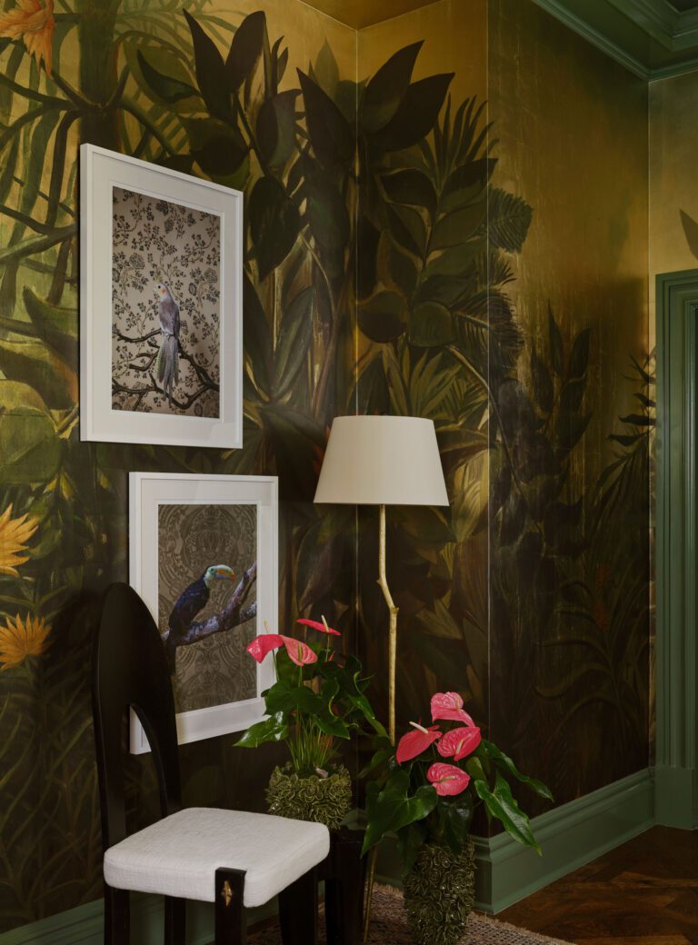 Step into “Sogno Verde,” a tranquil retreat by Champagne Designs. Inspired by Tuscany’s rolling hills, this space draws on our Wanderlust wallpaper collection to transport you to a magical, nature-infused haven.