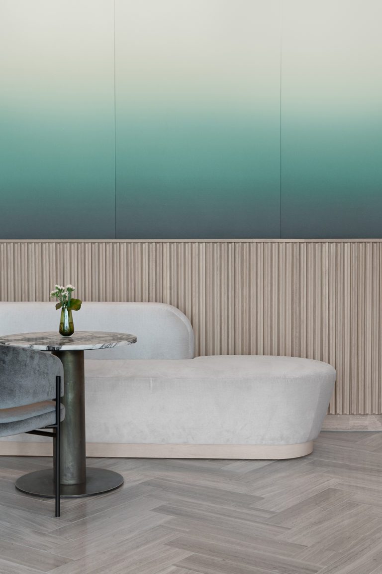 Aurora in Bayou digitally printed on linen via our sister company Cope installed in the Marcus Lounge at Four Seasons Montreal by Atelier Zebulon Perron.