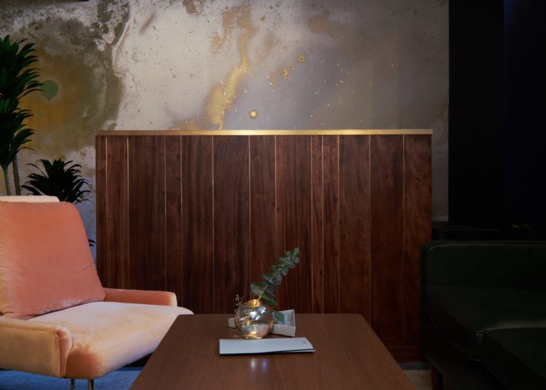 Sugar East came to life from the vision of Public Agenda as a sleek, midcentury styled upscale lounge that transports guests to another era, reminiscent of a NYC Speakeasy. A secret upscale bar located on Manhattan’s Upper East Side, Sugar East offers fresh sourced cocktail and menu ingredients, music playing through the early morning hours, and legal indoor smoking. Every element is a modern adaptation of classic design, based on Sugar East’s four pillars: escape, style, luxury and play. Inverted Spaces in Corona adorns the lounge.