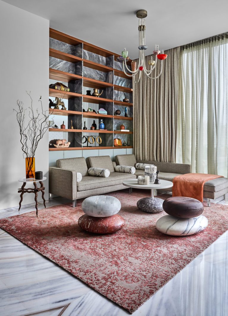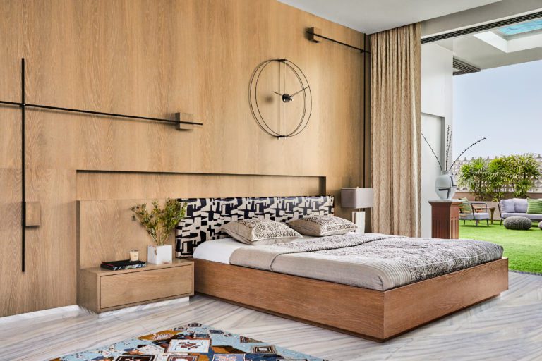 Conceived by Mumbai-based interior designer Jannat Vasi, this breathtaking apartment was built onto of a deserted space on the roof of a historical building in the heart of the bustling metropolis. The designer took this opportunity to fill the apartment with as much air and natural light as possible. So, despite the hidden engineering networks, the height of the ceilings is almost 5 m, and the sliding glass partitions blur the barrier between the interior and the open-air terrace.