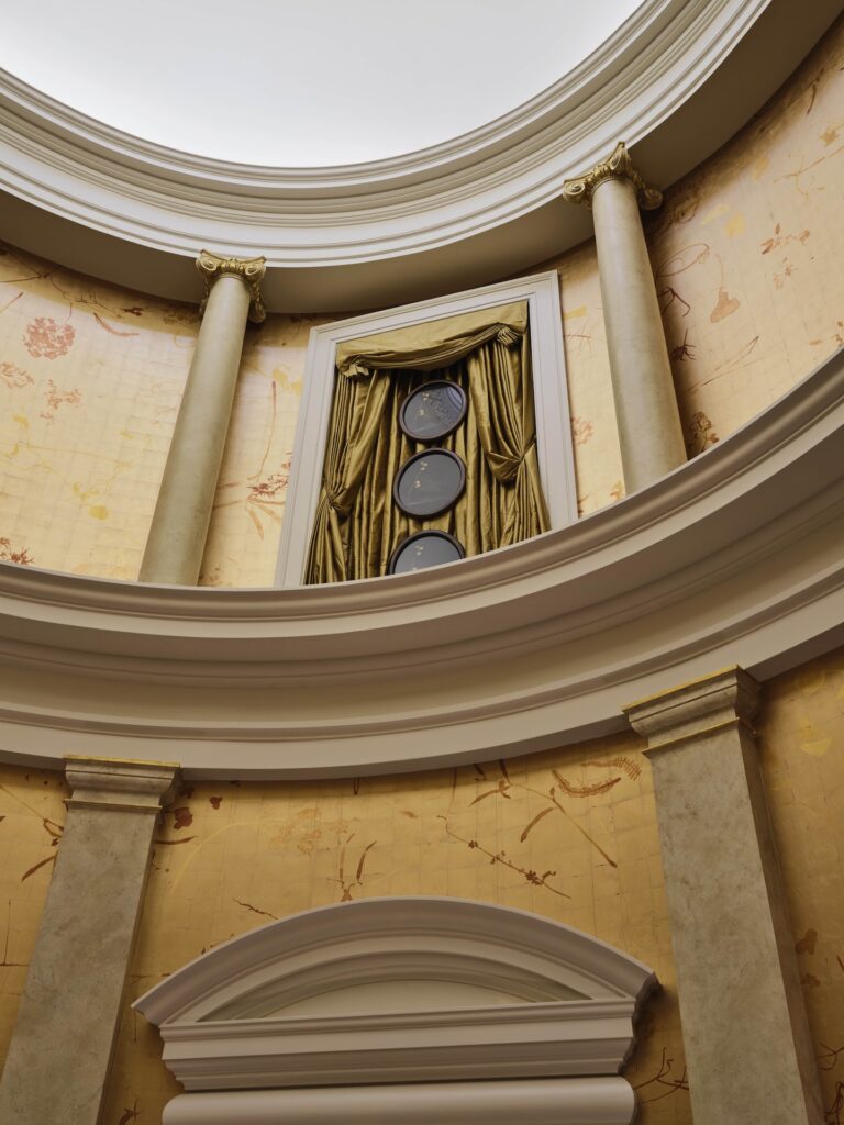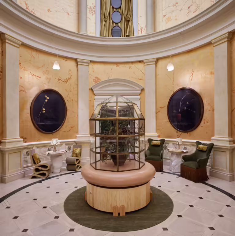The team at SWOON, the studio was tasked with refreshing the rotunda at the 2024 Kips Bay Decorator Show House Dallas, proving to be just the designers for the job. Founder Sam Sano and partner Josyln Taylor have experience working across both commercial and residential interiors, and the pair decided to blend their knowledge of the two to create a dreamy central location for stealing away, finding refreshment, and indulging a daydream or two in “Atrium Tisane.”