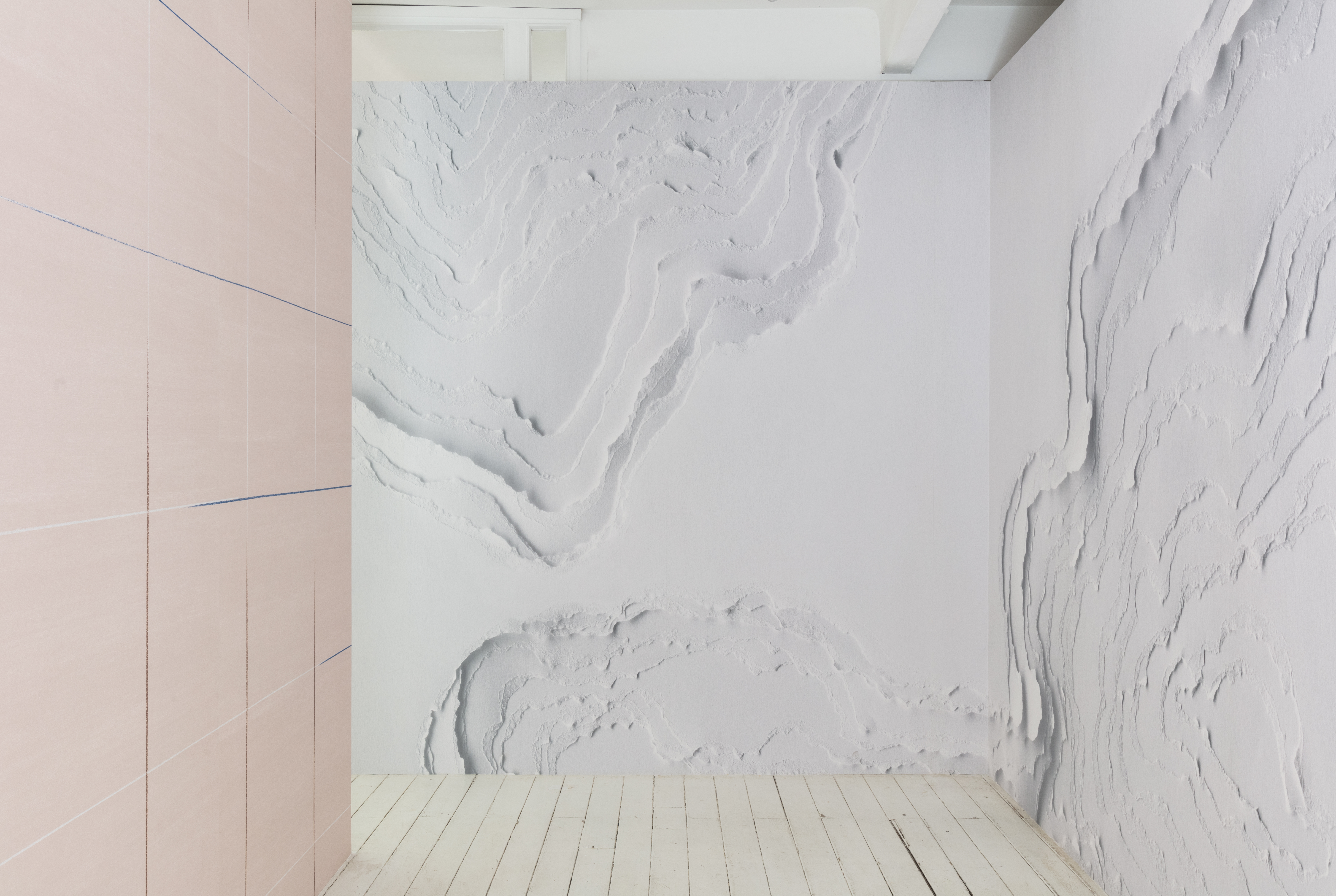 Calico Walpaper’s new launches this year includes Snarkitecture’s architectural torn paper wall covering… and a bucolic scene by Faye Toogood.